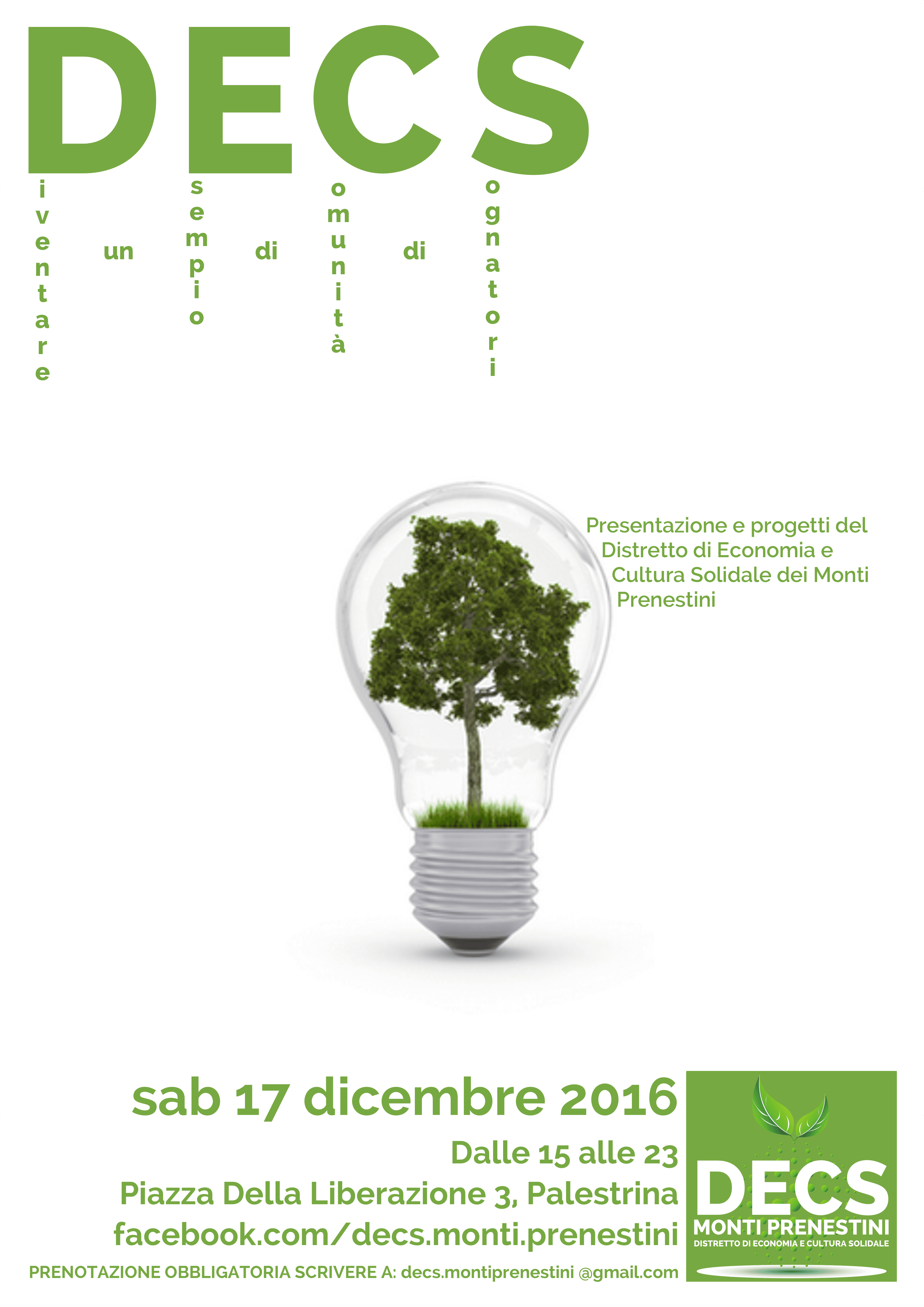 Sabato 17 dicembre 2016 dalle 15 alle 23 in piazza della Liberazione 3 a Palestrina (RM).
