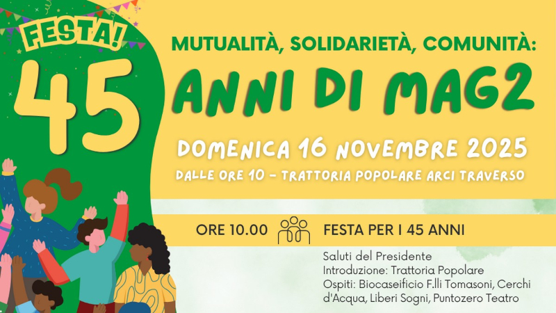 MAG2 festeggia il 45° compleanno! Domenica 16 novembre 2025 a Milano.