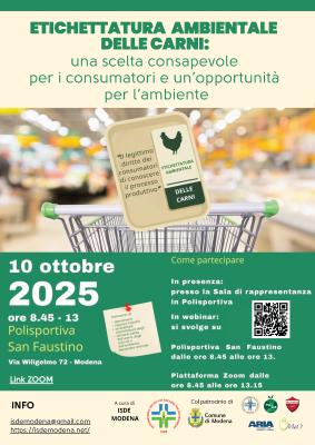 Venerdì 10 Ottobre alla Polisportiva San Faustino Medici per l'Ambiente - ISDE Modena parlerà di etichettatura ambientale delle carni, per scelte più consapevoli, sostenibili e salubri!