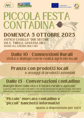 I Ru.Re, Rurali Reggiani, gruppo emiliano di ARI, Associazione Rurale Italiana e membro de La Via Campesina, vi invitano a condividere una giornata speciale: la PICCOLA FESTA CONTADINA, domenica 5 ottobre 2025 dalle ore 10 alle 17 all’Antico Casello Due Secchie in via E. Tirelli a Gavassa (RE).